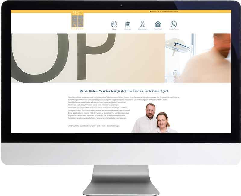 Umsetzung der Website von MKG Greven auf Joomla, einer Praxis für Mund-, Kiefer- und Gesichtschirurgie. Ziel war eine moderne, vertrauensvolle Online-Präsenz mit klarer Struktur und benutzerfreundlicher Navigation.