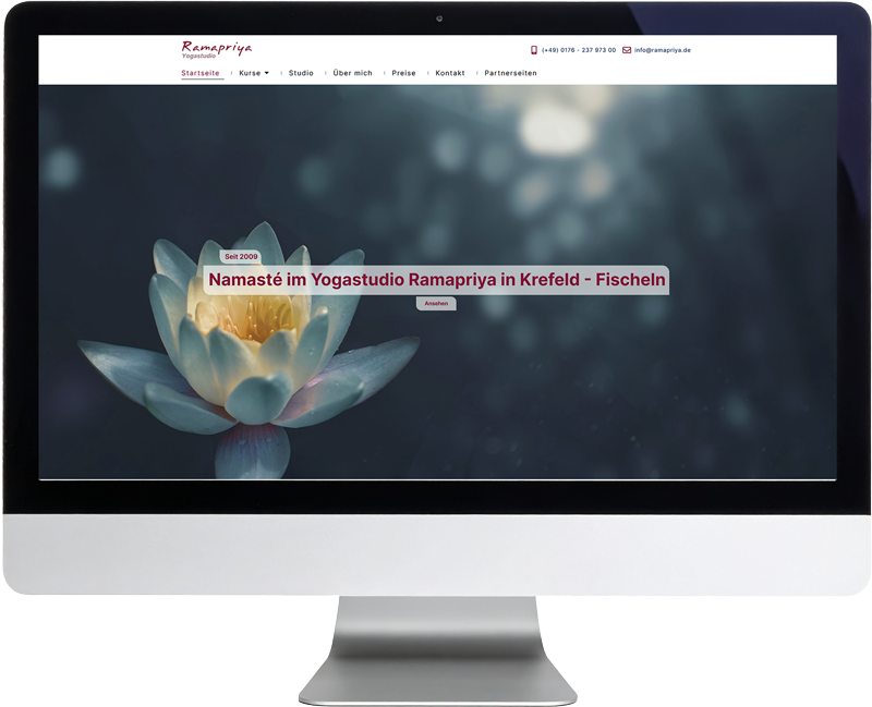 Eine moderne, ruhige und suchmaschinenoptimierte Website, die das Yogastudio Ramapriya als kompetente Anlaufstelle für Yoga in Krefeld positioniert, Vertrauen aufbaut und Interessierte gezielt zur Teilnahme an Yoga-Kursen und Angeboten motiviert.